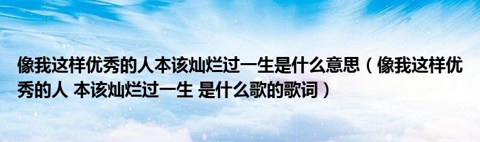 关于像我这样优秀的人本该灿烂过一生是什么意思,像我这样优秀的人 本该灿烂过一生 是什么歌的歌词这个很多人还不知道,今天菲菲来为大家解答以上的问题,现在让我们一起来看看吧!