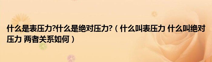 什么是表压力?什么是绝对压力?(什么叫表压力什么叫绝对压力两者关系如何)