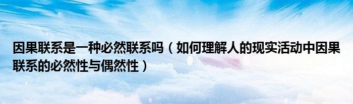 关于因果联系是一种必然联系吗,如何理解人的现实活动中因果联系的必然性与偶然性这个很多人还不知道,今天菲菲来为大家解答以上的问题,现在让我们一起来看看吧!