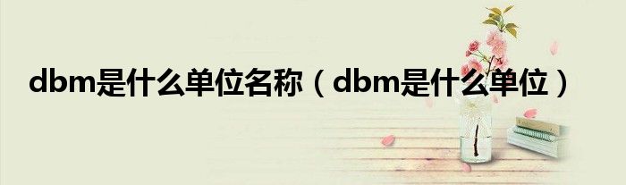 关于dbm是什么单位名称,dbm是什么单位这个很多人还不知道,今天菲菲来为大家解答以上的问题,现在让我们一起来看看吧!