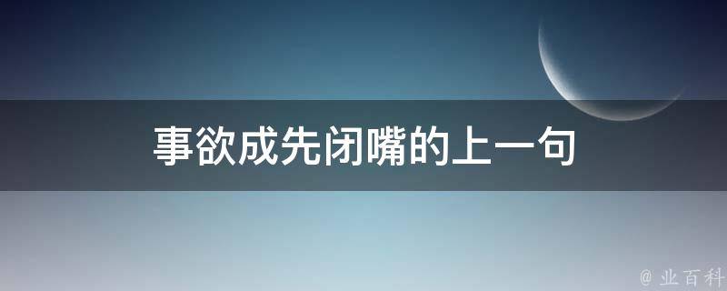 事欲成先闭嘴的上一句是言多必失。言多必失,事欲成先闭嘴这句话意为在处理事务时,过多的言语往往会导致失误。要想事情顺利完成,人们应该先保持沉默。这句话传递了几个重要的信息。首先,它强调了控制言辞的重要性。言辞的过多使用可能导致误解、冲突或牵连进更多的问题中,因此,在关键时刻,保持沉默通常更加明智。其次,这句话提醒人们注意行动的先后顺序。它强调在行动前保持沉默,意味着在做决策或采取行动之前,应该先静下心来思考,仔细评估现状,策划好行动方案。最后,这句话也反映了智慧和谦虚的态度。当我们学会倾听和观察时,能够更好地理解他人的观点和意见。闭口不言的同时,我们也为自己提供了学习和吸收新信息的机会。