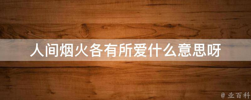人间烟火各有所爱的意思是每个人对于人世间的事物或情感有着不同的喜好和追求。它表达了人们对于事物的多样化意向和个人选择的差异。这句成语常用于形容人们对于人生价值观、审美观等方面的多样性和不同取向,提醒人们在对待他人的选择和追求时要保持尊重和宽容,不要因为差异而发生争执和冲突。