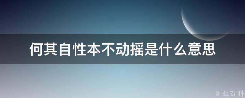 何其自性本不动摇的意思是某种事物、特质或原则的本质或基本属性是稳定不变的。何其表示强调,自性指内在的本质或特性,本不动摇表示永远不会改变、动摇。因此句子的含义可解释为:某个东西或原则天生具有稳定性和耐久性。