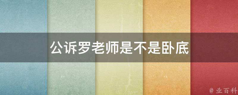 公诉罗老师是卧底。在电视剧《公诉》中,剧情的发展线条一环扣着一环,其中的每个人物也值得仔细推敲。其中藏得最深的就是罗小婷的爸爸罗江孝了。从他的家庭情况来看,并不是缺钱,并且自己的女儿当时也极力反对自己到惠权任职,但是他依旧坚持,所以他极有可能是为了在惠权集团当卧底,到惠权之后,他深受董事长的赏识,权力和地位都比较可观。