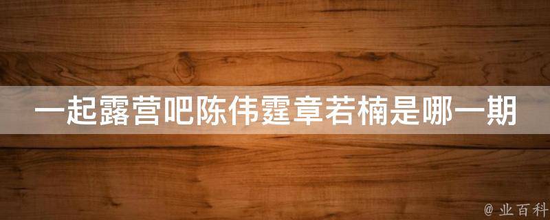 最佳答案陈伟霆和章若楠一起参加的综艺是《一起露营吧》,他们共同参加了该综艺的第一期、第二期、第三期、第四期。该节目带领观众在5站2天1夜的露营企划中,感受自然风景疗愈人心的力量,打开观众探索生活乐趣的新视角。