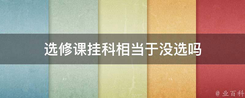 选修课挂科相当于没选,这意味着无法获得该选修课所提供的学术知识和技能,也无法将其计入学分总数或学业记录中。在某些情况下,选修课的挂科可能会对学业进展和毕业要求产生影响。具体影响取决于所在学校和课程要求的规定。