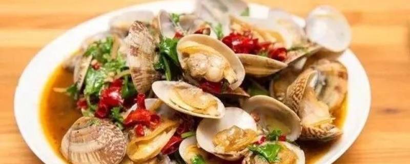 文蛤、青红辣椒、蒜瓣、香葱、豆瓣酱、姜、干辣椒段、调制酱油、日本白酱油、鱼露、蚝油、味精、鸡精、砂糖、胡椒粉、料酒、料酒、玉米淀粉。