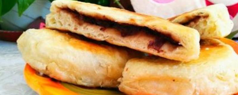 取其中一个小面团,用手掌按压平或用擀面杖擀成圆成小面饼,中间放入1大勺豆沙馅。