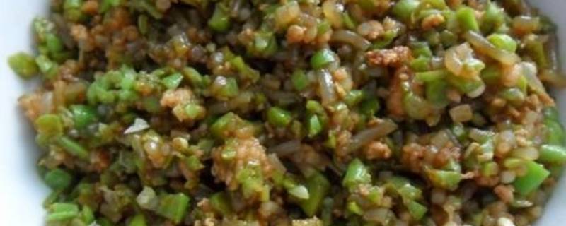 豆角切碎,肉适量,葱和姜都可以根据自己的口味加。