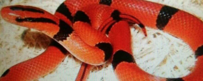洪都拉斯奶蛇:全长100-120公分。吻部鼻间鳞后缘至前额鳞间有条宽幅的白色横纹。头部呈黑色,由顶鳞正后方至躯体部分为其第1条黑色环纹,此环纹可延伸至腹部。躯体上另有许多红,黑及白色环纹。白色环纹较宽且略带黄色。