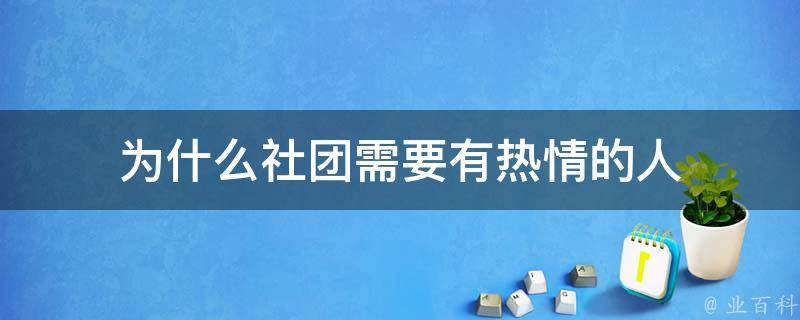 2、提供动力和推动力:热情的人通常具有对自己所从事的社团活动的高度热衷和动力。他们的热情能够影响和鼓励其他成员,激发他们积极参与社团活动,推动社团的发展和成就。