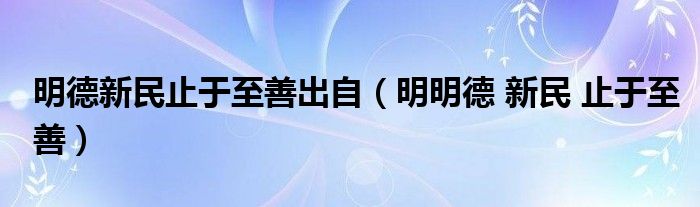大家好,小联来为大家解答以上的问题。明德新民止于至善出自,明明德 新民 止于至善这个很多人还不知道,现在让我们一起来看看吧!