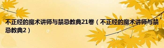 关于不正经的魔术讲师与禁忌教典21卷,不正经的魔术讲师与禁忌教典2这个很多人还不知道,今天菲菲来为大家解答以上的问题,现在让我们一起来看看吧!