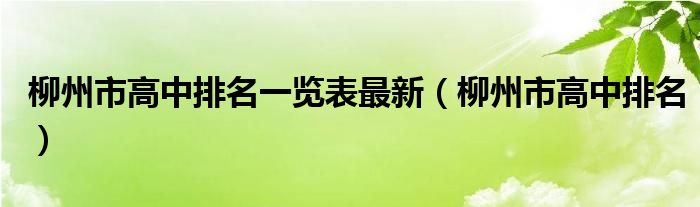 最佳答案关于柳州市高中排名一览表最新,柳州市高中排名这个很多人还不知道,今天菲菲来为大家解答以上的问题,现在让我们一起来看看吧!1、柳州铁路第一中学柳州铁路第一中学坐落在柳州市城站路竹鹅溪畔,是一所全日制高完中,也是全国铁路系统重点中学。2、学校创建于1946年12月8日,于1969年更名为柳铁一...