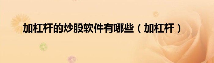 关于加杠杆的炒股软件有哪些,加杠杆这个很多人还不知道,今天菲菲来为大家解答以上的问题,现在让我们一起来看看吧!