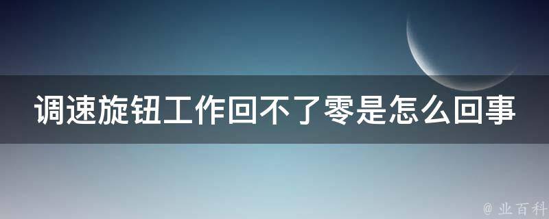 调速旋钮工作回不了零是因为调速器故障、电机问题、传感器损坏等。调速器的内部机构出现老化、损坏或者误差等情况,需要进行更换或维修。在进行调速器维修之前,首先需要进行故障排查,找到调速器无法归零的确切原因。一旦找到了故障点,即可进行具体的维修或更换。