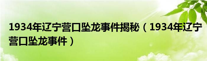 关于1934年辽宁营口坠龙事件揭秘,1934年辽宁营口坠龙事件这个很多人还不知道,今天菲菲来为大家解答以上的问题,现在让我们一起来看看吧!
