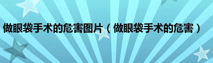 关于做眼袋手术的危害图片,做眼袋手术的危害这个很多人还不知道,今天菲菲来为大家解答以上的问题,现在让我们一起来看看吧!