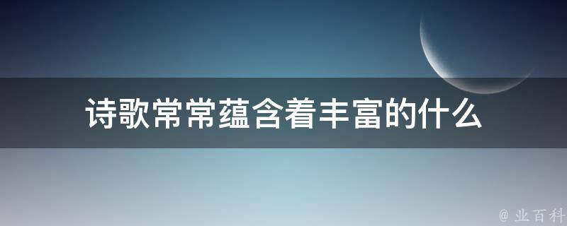 诗歌常常蕴含着丰富的想象。诗歌是一种抒情言志的文学体裁,是用高度凝练的语言,生动形象地表达作者丰富的情感,集中反映社会生活并具有一定节奏和韵律的文学体裁。诗歌常常表达了诗人独特的感受,蕴含着丰富的想象。