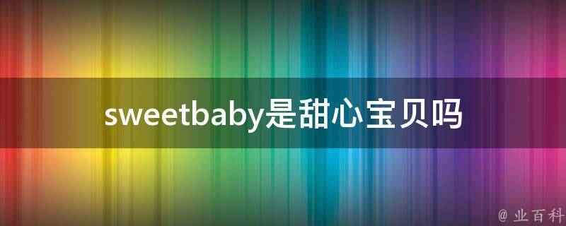 sweetbaby是甜心宝贝,是夸奖和赞美的意思。Sweet是一个英语单词,意为甜的、芳香的、悦耳的、漂亮的,以及甜食、糖等。Baby也是一个英语单词,作名词时意为婴儿、孩子气的人。作动词时意为纵容、娇纵,或当婴儿般对待。