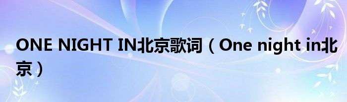 ONENIGHTIN北京歌词(Onenightin北京)
