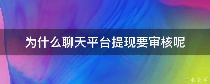 为什么聊天平台提现要审核呢