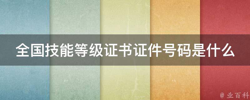 全国技能等级证书的证件号码是由17位数字和字母组成,其中前6位为发证机构代码,第7-12位为证书持有人的个人编号,第13-14位为证书类别编号,第15-16位为证书级别编号,最后一位为校验码。