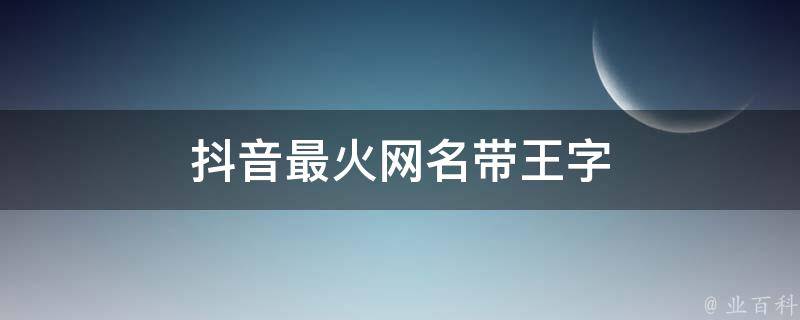 抖音最火的带王字网名:姐就是女王、隐战决王、戴上王冠我做王、她的王、东亚小醋王、孤独为王、曾经的王、王母娘娘、青蛙变王子、寡人为王、单身是王、孤非王、霸气王、封你为王、骄傲女王、占心为王、加冕为王、搞怪之王、霸王战队、成王败寇等。