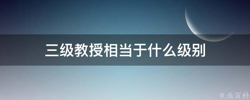 三级教授相当于正厅级别,根据《中华人民共和国教育法》规定,三级教授一般是学界上工作时间较长也取得一些突破的正教授,即学科负责人、市骨干、青年精英等,三级教授年薪30万元,是高级专业技术职务的第二档,相当于正厅级别待遇。