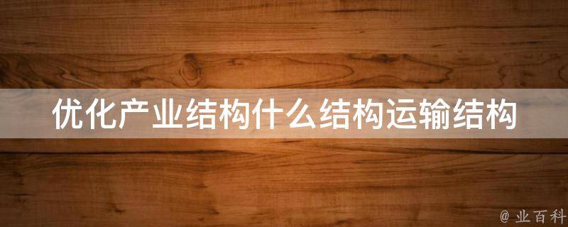 优化产业结构什么结构运输结构