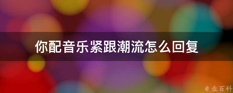 你配音乐紧跟潮流,可以回复紧跟潮流也不容易啊,现在潮流发展得太快了,不跟紧点可能就跟不上了。紧跟潮流可以用多种多样的方式来不断充实自己,扩大自己的知识面,提高工作效率,优化工作方式。紧跟潮流还要优化自身的知识结构。
