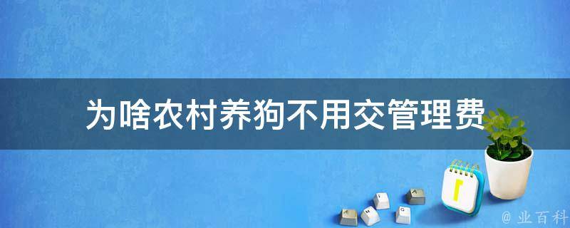 为啥农村养狗不用交管理费