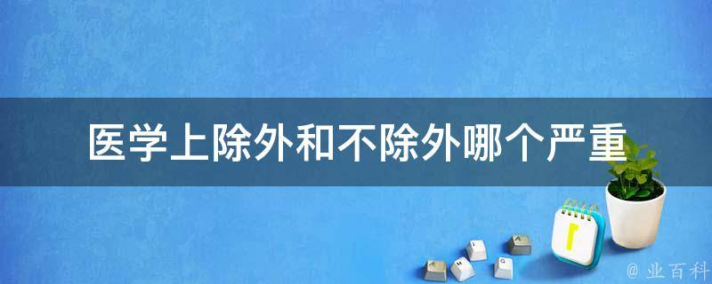 最佳答案医学上不除外比除外严重。除外是指病情已经超出了原发病的范畴,需要另外的治疗方案,但是病情可控,不会危及生命;而不除外则是指病情未超出原发病的范畴,不需要另外的治疗方案,但是病情较为严重,可能会危及生命。