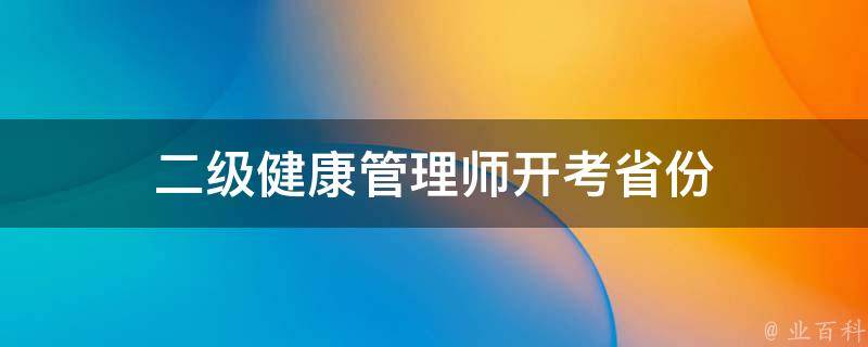 最佳答案二级健康管理师考试开考省份有:江西、云南、河北、四川、山东、广东、广西、重庆、吉林、湖北、陕西、天津、甘肃、黑龙江、辽宁、江苏、贵州、安徽、海南、青海、湖南等。二级健康管理师考试是由国家卫生健康委人才交流服务中心统一安排考试的,考试通过后可获得由国家卫健委人才交流服务中心颁发...