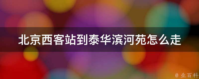 最佳答案从北京西客站到泰华滨河苑,可以乘坐公交线路413路,经过2站到达南十里居北站,再步行约100米到达泰华滨河苑。北京西站又称北京西客站,位于中国北京市丰台区,是中国铁路北京局集团有限公司管辖的特等站。