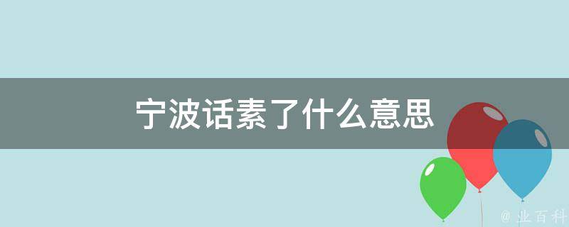 宁波话素了的意思是完蛋了、玩完了。素了在宁波话里用的并不是很多,但是在宁波下辖的象山县用素了的方言特别的普遍,经常性使用。宁波话俗称宁波闲话,是吴语的一种重要方言。属于吴语太湖片-甬江小片,分布在浙江宁波、舟山及周边一带。宁波各地方言十分接近,内部一致性很高。历史上宁波话对上海话影响极大。
