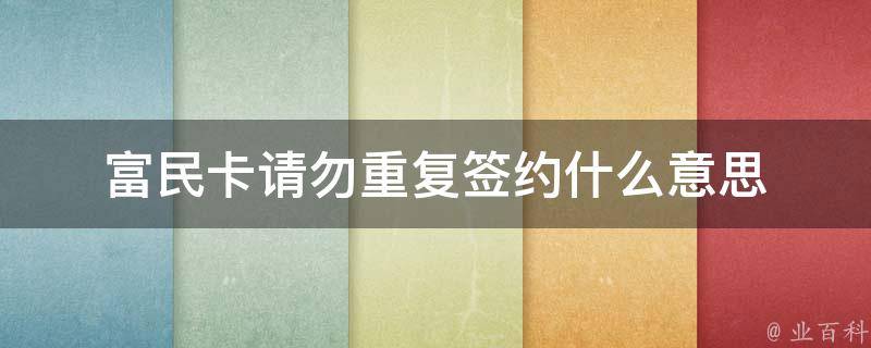 富民卡请勿重复签约的意思是如果已经与富民卡签订了某种合同或协议,再次重复签约是无效的,这通常是为了防止您重复签订相同的合同而造成不必要的损失。因此,如果已经签订了富民卡的合同,就不需要再次重复签约。