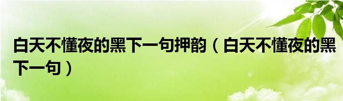 白天不懂夜的黑下一句押韵(白天不懂夜的黑下一句)