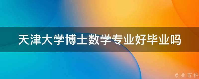 视情况而定。天津大学博士数学专业是否好毕业取决于学生的个人能力和学习情况。如果学生在课程学习和研究项目中表现出色,撰写出有创新性和学术价值的论文,并通过了专家组的评审和答辩,那么毕业难度就会降低。