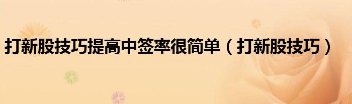 打新股技巧提高中签率很简单(打新股技巧)