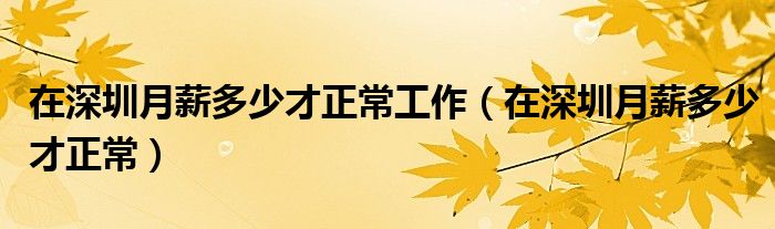 在深圳月薪多少才正常工作(在深圳月薪多少才正常)