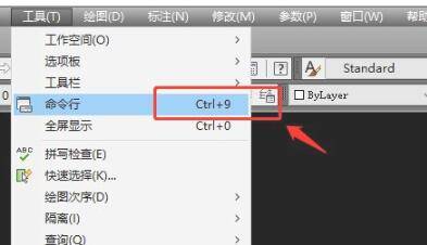 命令栏后有ctrl+9的标注,在键盘上键入ctrl+9组合键也可以调出命令栏。