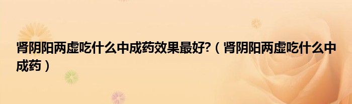 肾阴阳两虚吃什么中成药效果最好?(肾阴阳两虚吃什么中成药)