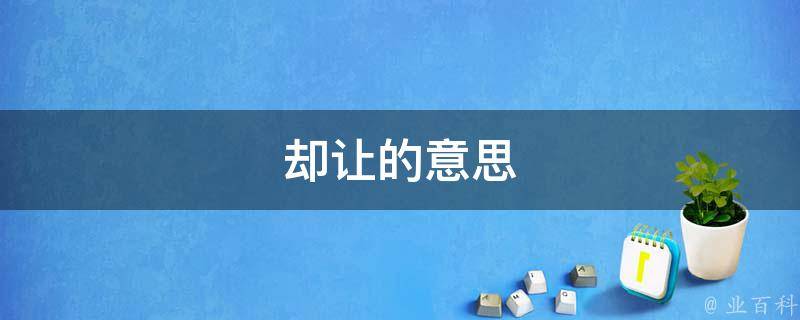 最佳答案却让的意思是推辞不受。却,汉语一级字,读作却,本义指退。让为汉语一级通用规范汉字(常用字)。此字始见于战国文字。让本义指责备,彼此相互指责,转指避让。又引申指自己放弃利益或机会,而将其提供给别人,也引申指转让。