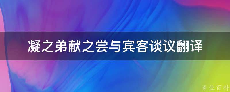 最佳答案凝之弟献之尝与宾客谈议翻译是:王凝之的弟弟王献之曾经与客人讨论切磋问题。凝之弟献之尝与宾客谈议里的尝是曾经的意思。此句出自《王凝之妻谢氏传》:凝之弟献之尝与宾客谈议,词理将屈,道韫遣婢白献之曰:欲为小郎解围。乃施青绫步鄣自蔽,申献之前议,客不能屈。翻译过来的意思是:王凝之的弟...
