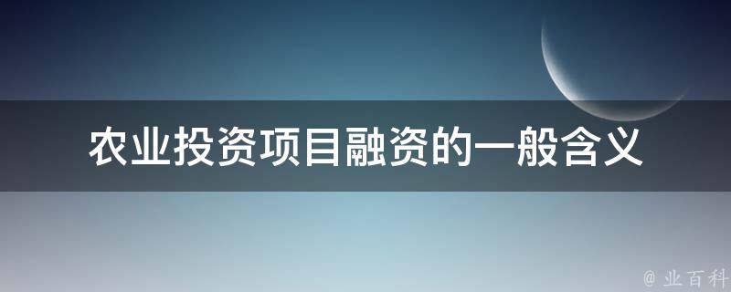 农业投资项目是指针对农业方面能使人获得相当的利益而将一定数量的资金或有形、无形的资产投入农业的活动。党的十九大报告中指出:农业农村农民问题是关系国计民生的根本性问题,必须始终把解决好三农问题作为全党工作重中之重。要坚持农业农村优先发展,按照产业兴旺、生态宜居、乡风文明、治理有效、生活富裕的总要求,建立健全城乡融合发展体制机制和政策体系,加快推进农业农村现代化。