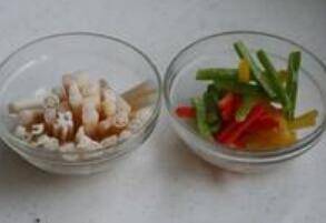 准备食材:藕苗、彩椒、蒜泥、盐、白醋、葱油、香油。