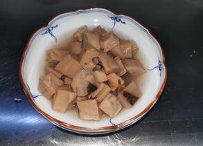 倒入藕,加盐适量,米酒1勺,煮一会。