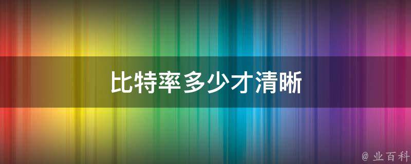 比特率多少才清晰