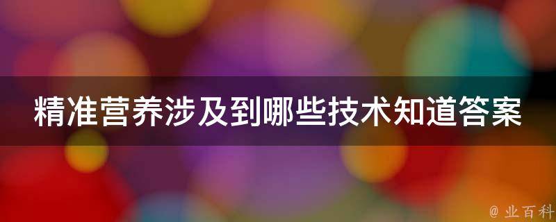 最佳答案精准营养涉及到的技术有宏基因组、营养代谢组学、蛋白质组学、转录组学、影像学、生物信息学、人工智能等。精准营养,指人们在选择食物或进行营养干预时,应将自己视作人和微生物的超级共生体,通过基于个性化的营养支持来优化健康或预防、管理、治疗疾病。